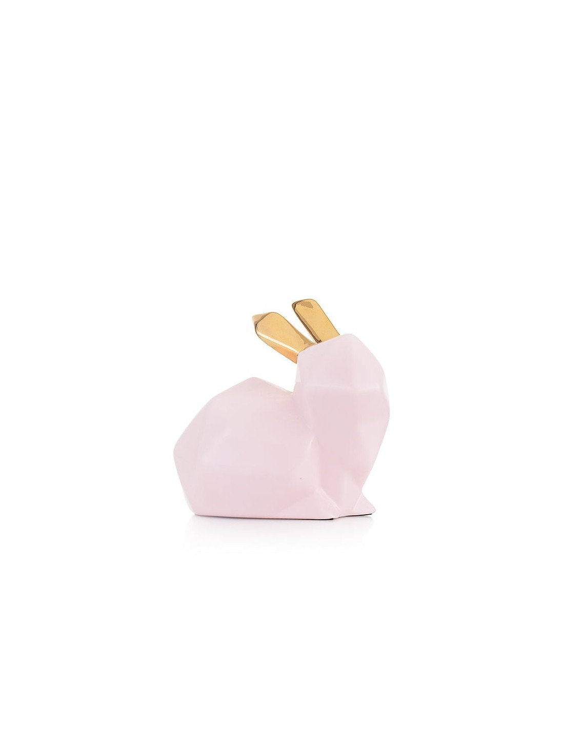 La porcellana cipria offre al coniglio una finitura elegante e delicata, creando un contrasto affascinante con le orecchie dorate. Le orecchie adornate di oro aggiungono un tocco di lusso e raffinatezza, creando un'accattivante combinazione di stili.