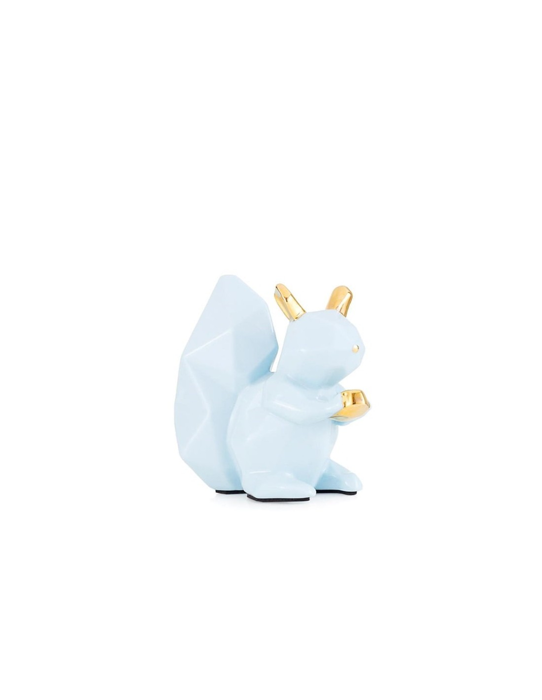 Un grazioso scoiattolo celeste in ceramica con orecchie e ghianda dorati è una vera delizia per gli occhi e un complemento affascinante per la tua collezione di oggetti d'arte.