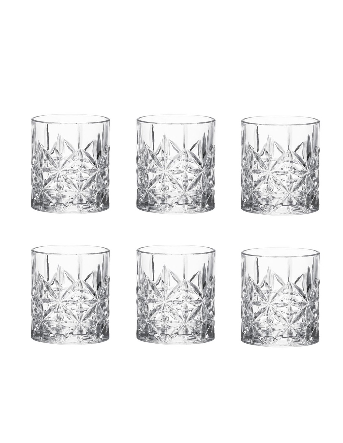 L'elegante set composto da sei bicchieri in vetro trasparente, impreziositi da un raffinato motivo geometrico in rilievo a forma di stella, che cattura la luce creando splendidi riflessi. La linea Vendome di Tognana unisce robustezza e stile, ideale per chi desidera arricchire la tavola con un tocco di classe senza rinunciare alla praticità. Perfetti per servire acqua e bevande, questi bicchieri si distinguono per il loro design ricercato, adatto sia all’uso quotidiano che alle occasioni speciali.