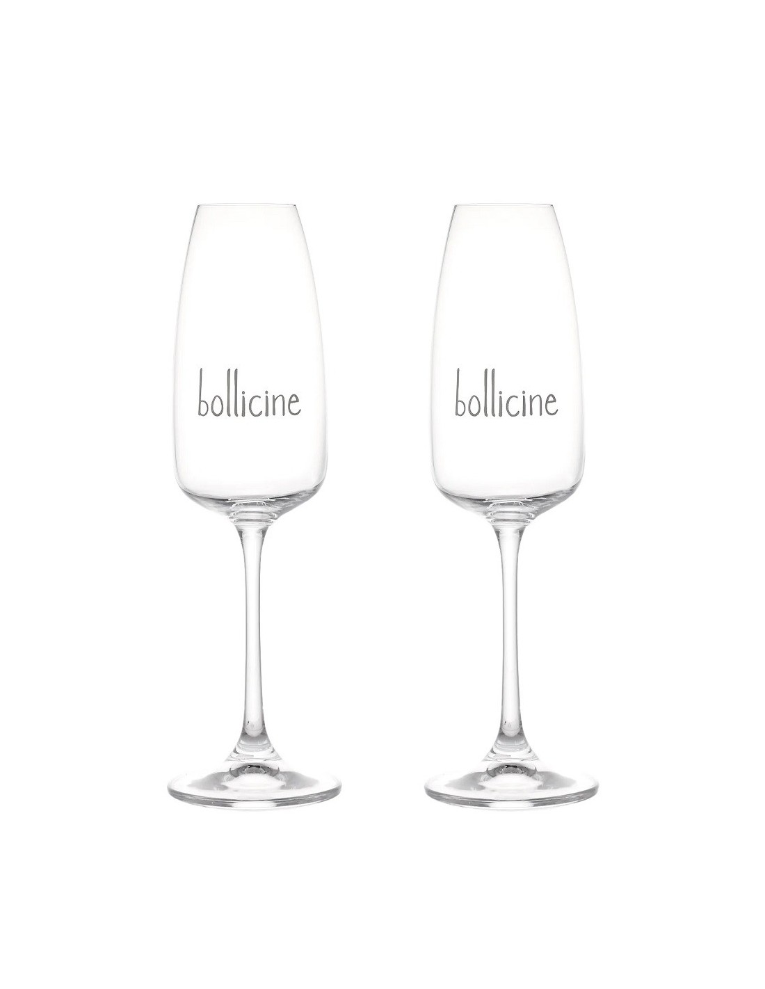 Il set 2 Flute trasparente con serigrafato Bollicine in bianco.