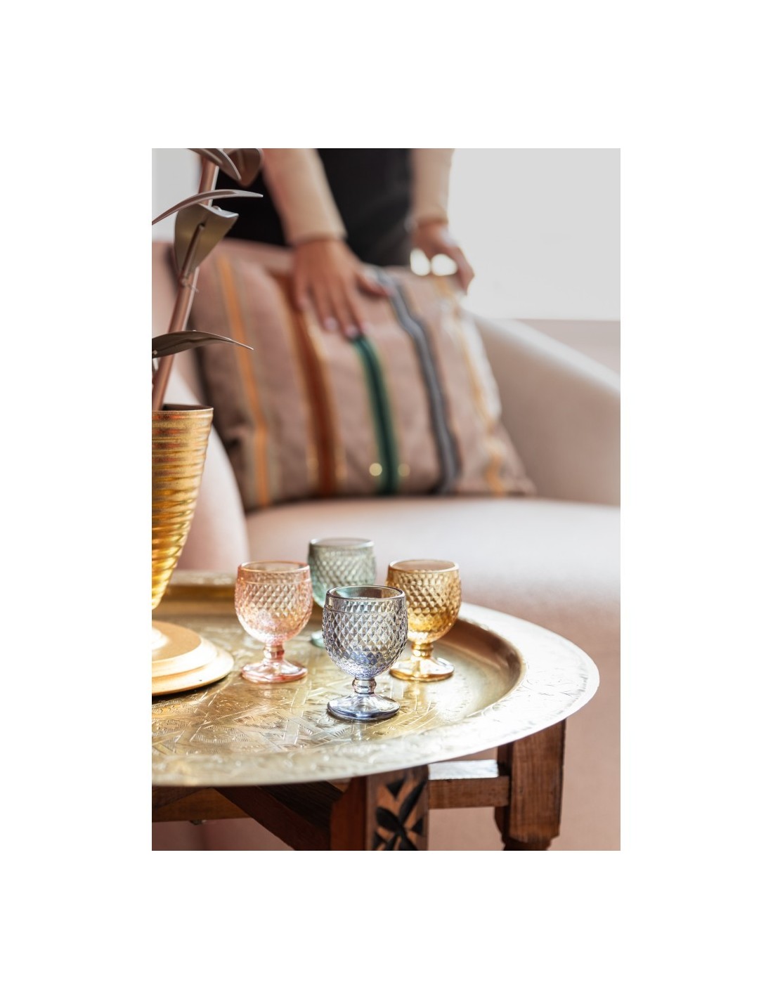 Questo raffinato set comprende quattro bicchierini in vetro nei colori ambra, blu, cipria e verde, tonalità moderne e decorative che rendono ogni occasione più speciale. Ideali per cene con amici, aperitivi o momenti conviviali, uniscono stile e funzionalità.