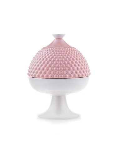 Dal tocco cromatico delicato, la scatola portaoggetti cipria a forma di pumo di Emò Italia è perfetta per essere una bomboniera portafortuna per cerimonie.