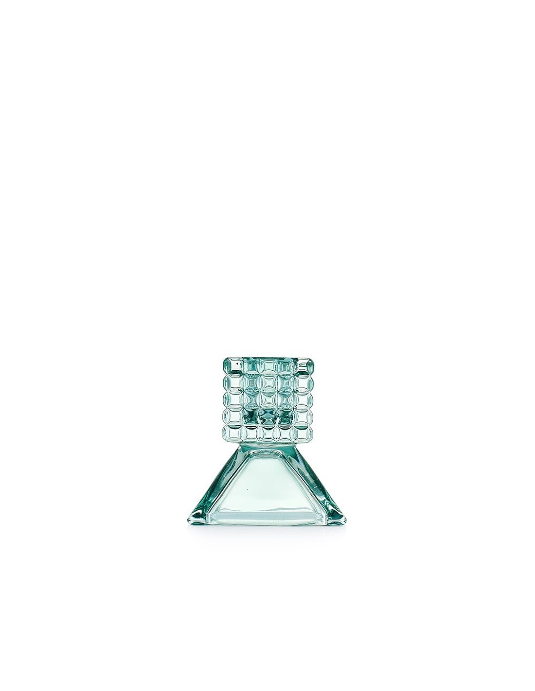 Le sue dimensioni compatte lo rendono perfetto per adattarsi a spazi ridotti, come tavolini, mensole o comodini. Il design piramidale conferisce una moderna semplicità, mentre le sfumature verdi aggiungono una delicata nota di colore, donando al vetro una sfumatura leggermente evanescente.