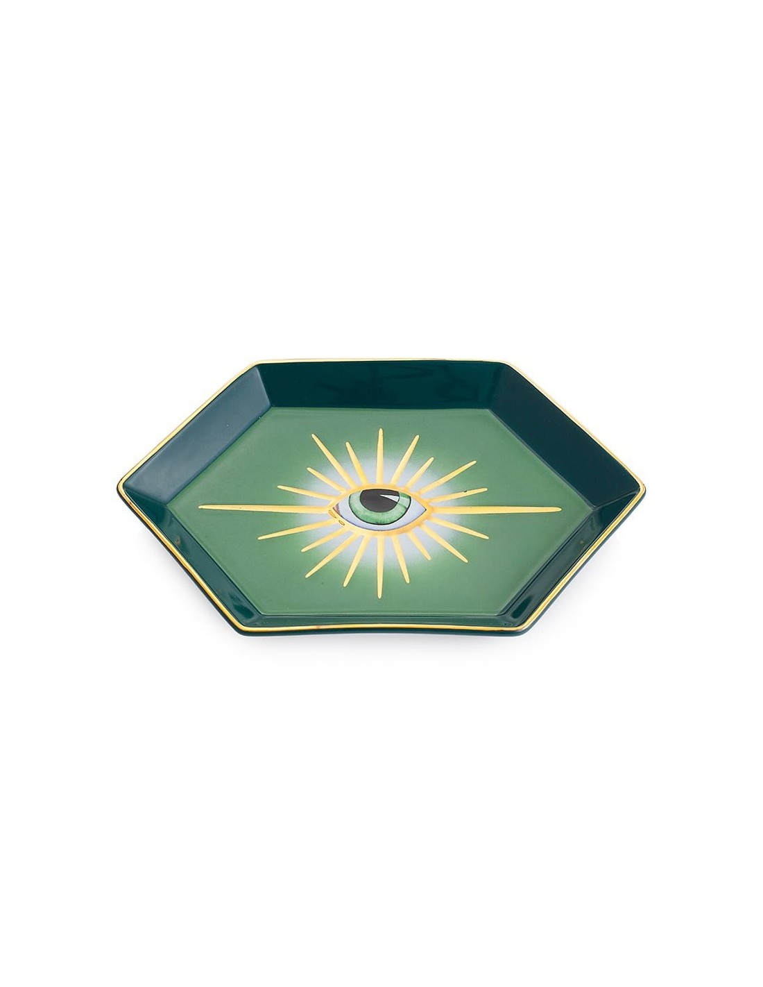 Eleva il tuo spazio con il nostro vassoio esagonale grande dallo sfondo verde arricchito al centro dal simbolo Mati, un'aggiunta di stile e significato.