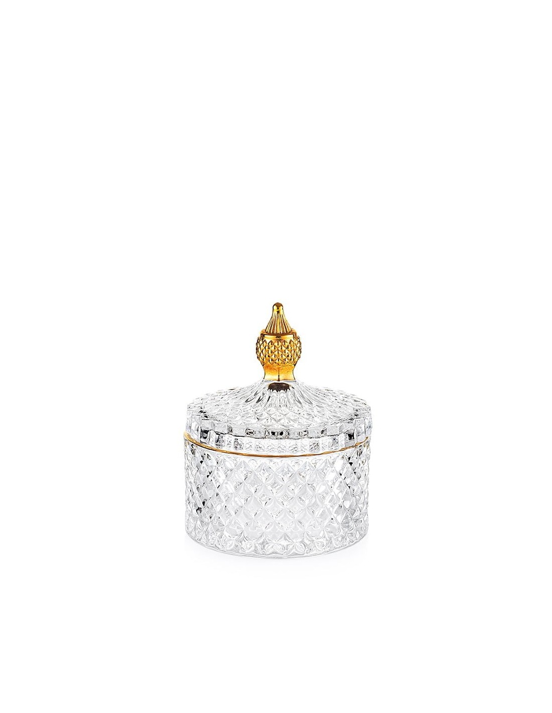 La scatola, realizzata con vetro trasparente di alta qualità dai decori dorati, permette di vedere chiaramente il suo contenuto, aggiungendo un tocco di leggerezza e trasparenza al tuo ambiente.