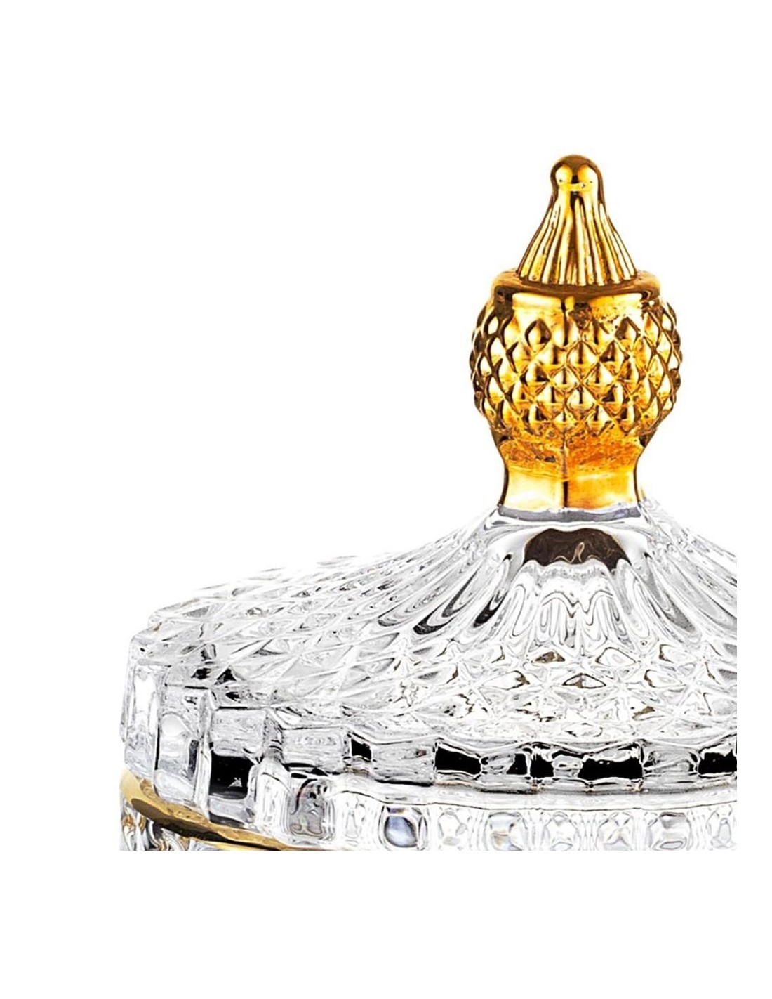 La combinazione di vetro trasparente e dettagli dorati rende questa scatola non solo funzionale, ma anche un elemento decorativo di grande impatto.