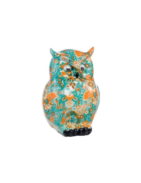 Gufo grande con decoro turchese e arancio Encantada
