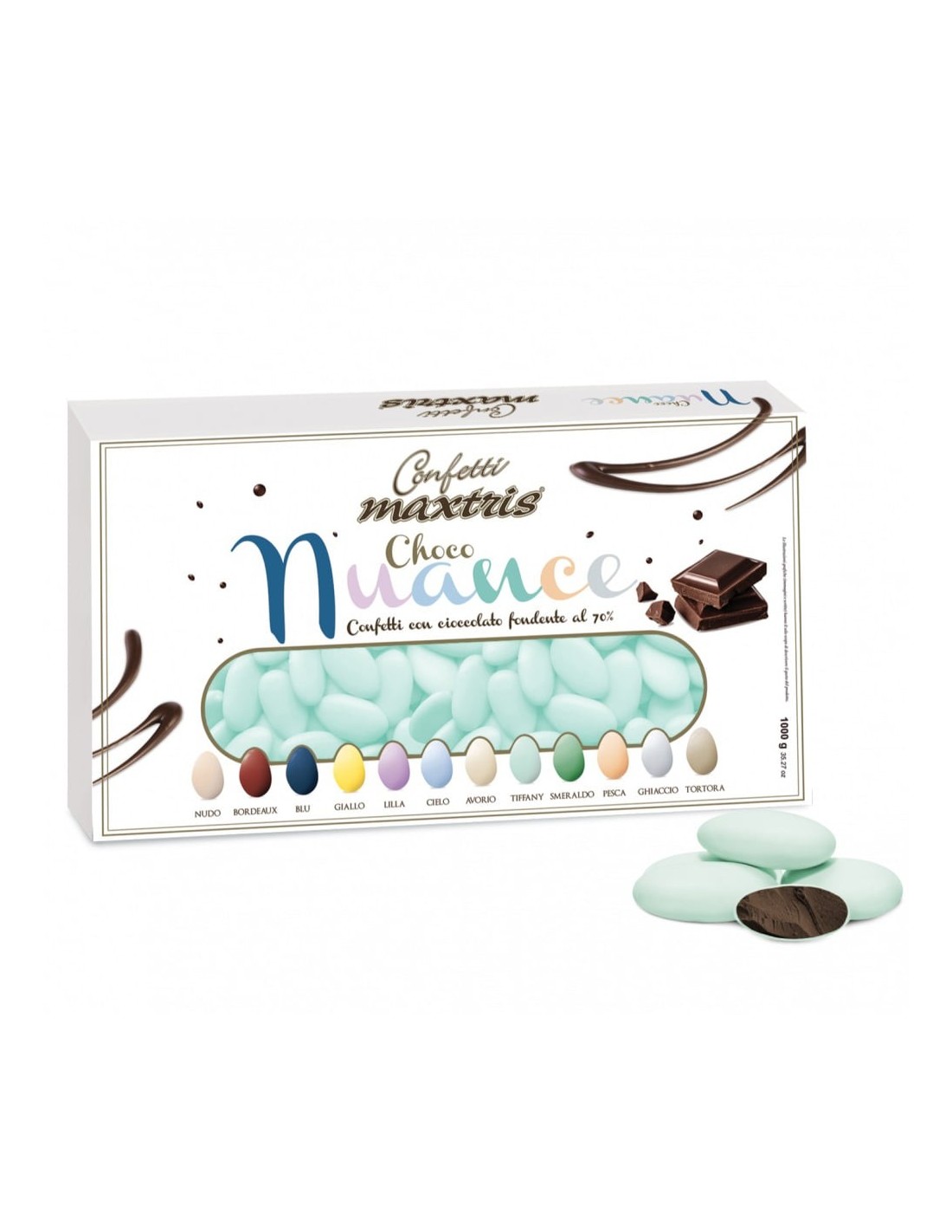I confetti Choco Nuance presentano un'anima di cioccolato fondente (cacao min. 70%) ricoperta da un sottile strato di zucchero.