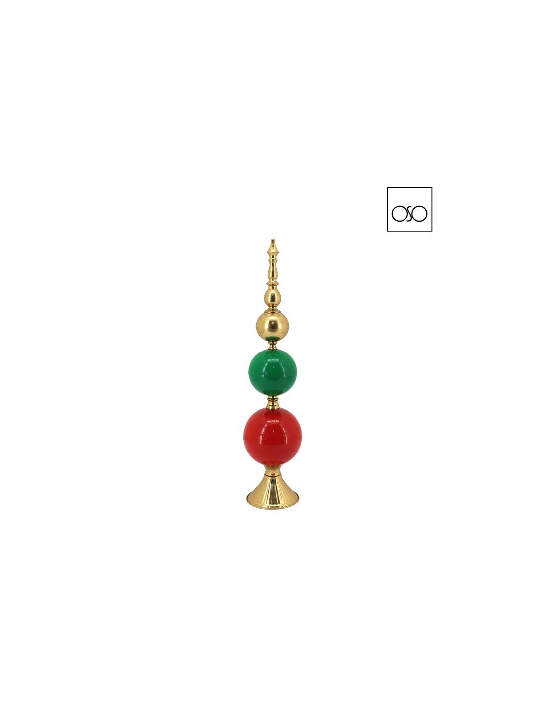 Il puntale è composto da un gioco armonioso di sfere colorate disposte lungo tutta la struttura. Le tonalità vivaci – tipiche delle feste – creano un effetto brillante e allegro, perfetto per chi desidera un albero ricco di personalità e colore. Le superfici delle sfere, lucide e riflettenti, catturano splendidamente la luce delle ghirlande e degli addobbi, contribuendo a un risultato visivo ancora più luminoso.