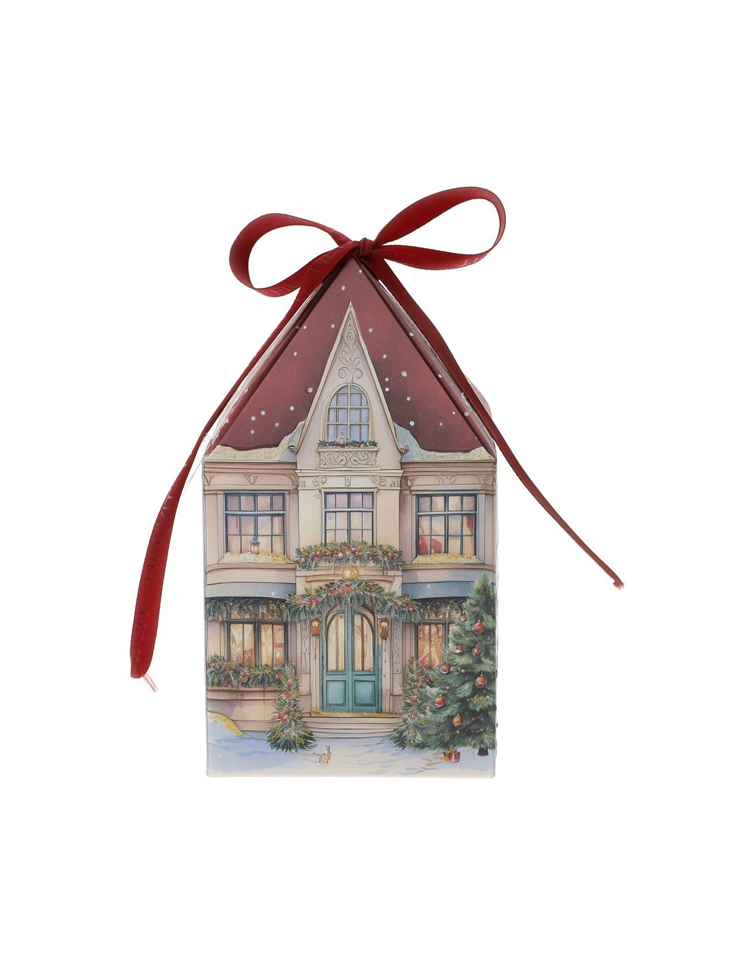 Deliziosa scatolina natalizia a forma di casetta in stile cottage, perfetta per impreziosire le festività con un tocco elegante e fiabesco. Realizzata in cartoncino rigido di qualità, è decorata con una raffinata illustrazione che raffigura una casa natalizia immersa in un’atmosfera invernale: finestre illuminate, ghirlande, alberi innevati e dettagli caldi che evocano il fascino del Natale tradizionale.