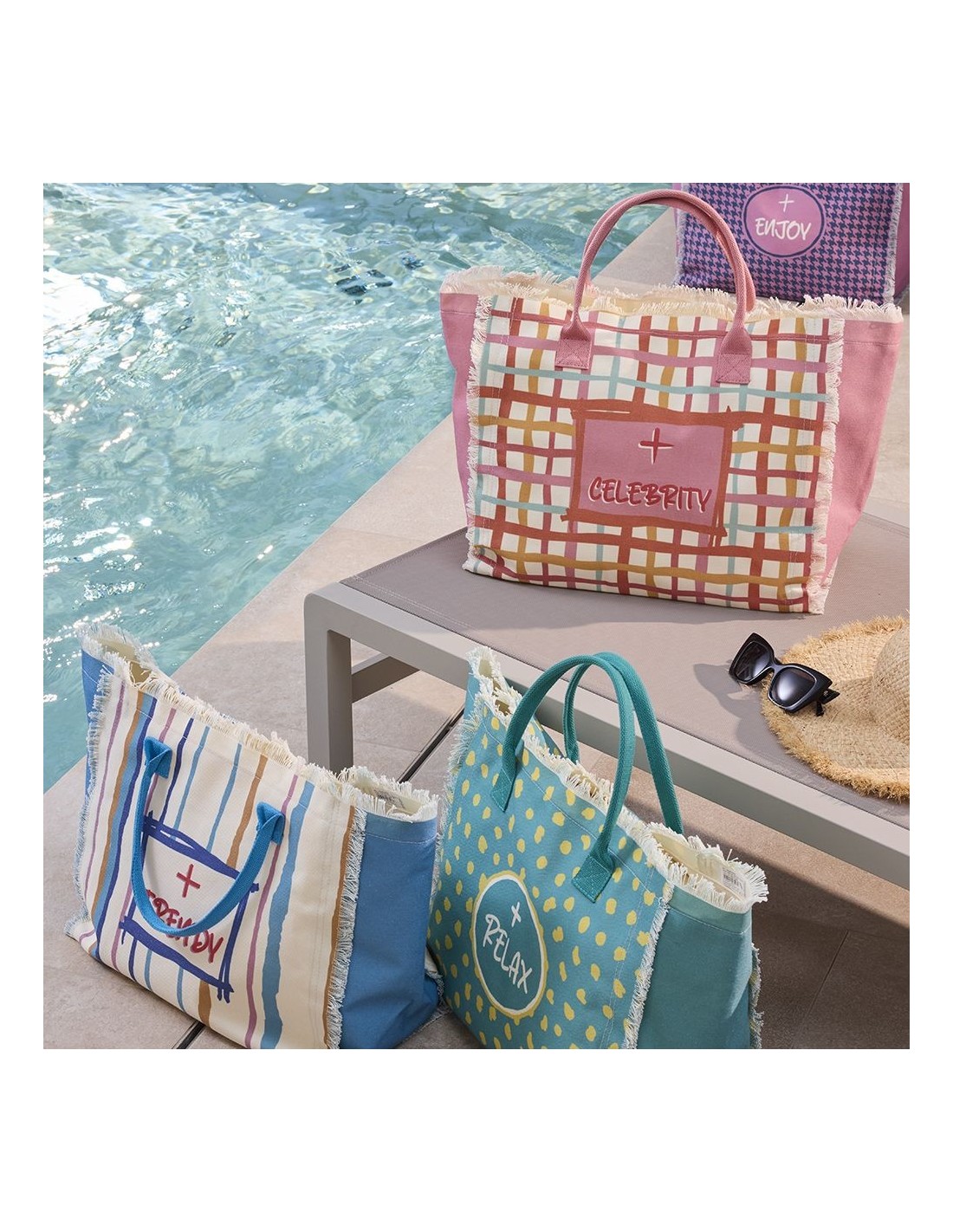 Realizzata in resistente poliestere, questa borsa si distingue per il suo design fresco e moderno in colore rosa, ideale per chi ama accessori vivaci e di tendenza. Le dimensioni capienti la rendono perfetta per contenere tutto il necessario: telo mare, crema solare, libri e accessori personali.