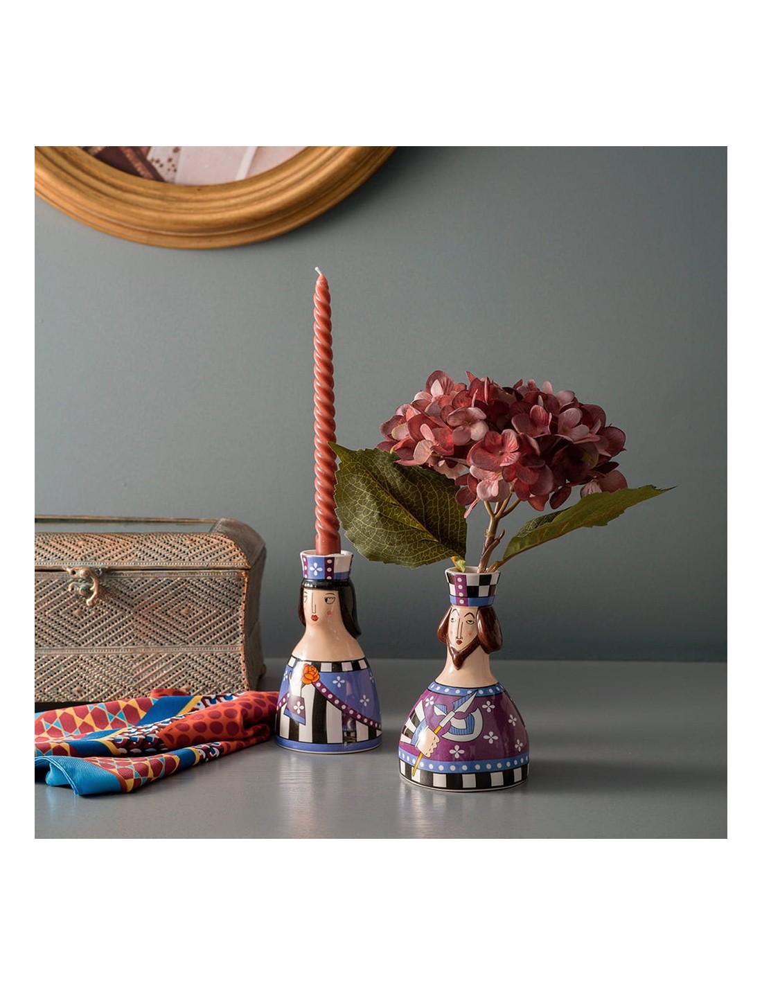 Il Profumatore a forma di Regina con mantello Viola e Fiore dipinto a mano della collezione i Girgenti di EGAN è fornito con 4 bastoncini diffondi fragranze.