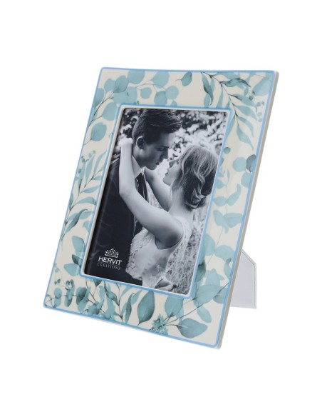 Portafoto in porcellana lucida con decori floreali Blu.