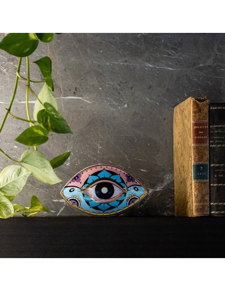 I decori aggiungono un tocco di originalità, conferendo all'occhio portafortuna una sensazione artistica e unica che aggiunge stile e personalità al tuo spazio di lavoro. L'occhio "Mati" è simbolo associato a credenze di protezione e fortuna, aggiungendo un elemento di significato e positività al tuo spazio.
