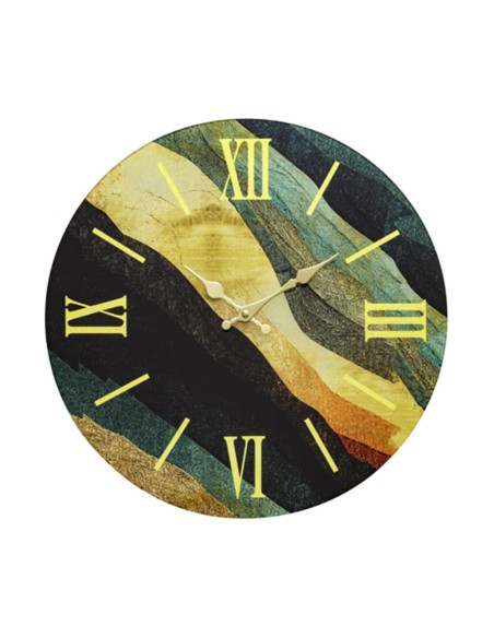 Aggiungi un tocco di eleganza senza tempo alla tua casa con questo sofisticato orologio tondo da parete. Realizzato in vetro temperato con uno sfondo ad effetto marmo ad onde e impreziosito da lancette dorate con numeri romani ad alto contrasto.