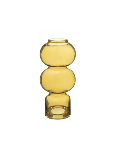 Vaso in vetro color senape dal design moderno e raffinato. La sua caratteristica principale è la decorazione con tre sfere in madreperla, che aggiungono un tocco di eleganza e luminosità al pezzo. Questo vaso è perfetto per esporre fiori o per essere utilizzato come elemento decorativo autonomo, grazie alla presenza del colore e dettagli preziosi che lo rendono un accessorio unico e sofisticato per qualsiasi ambiente.