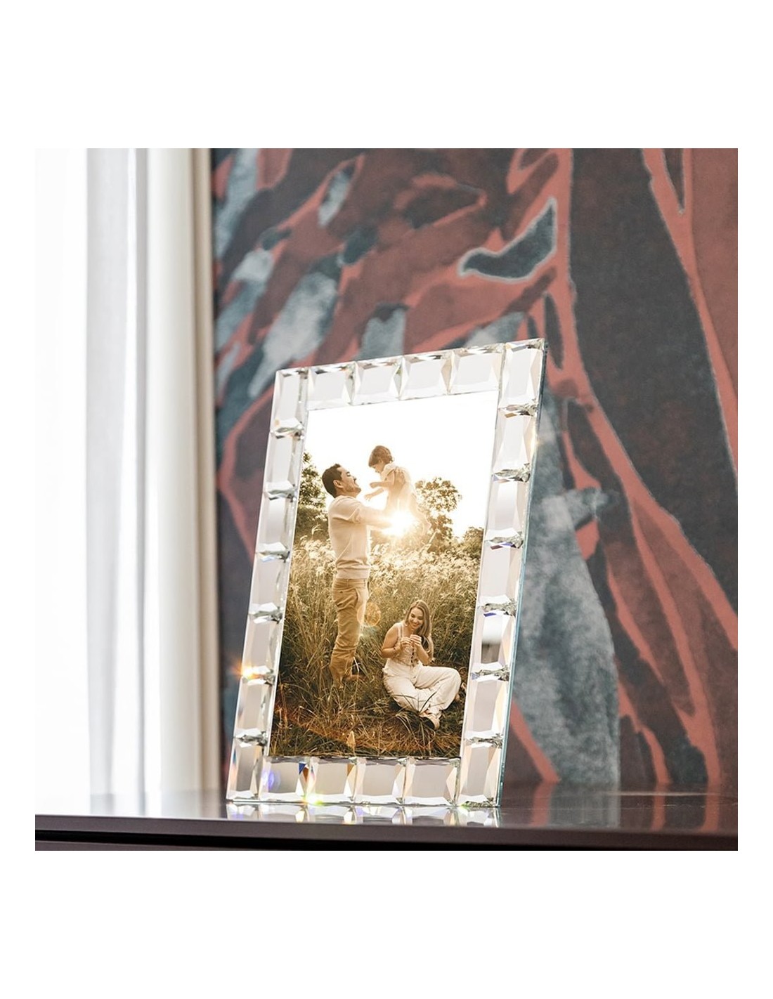 Portafoto in Cristallo specchiato della Linea Ghiaccio di Emò, dove incorniciare le foto che racchiudono tutto l'amore della famiglia.