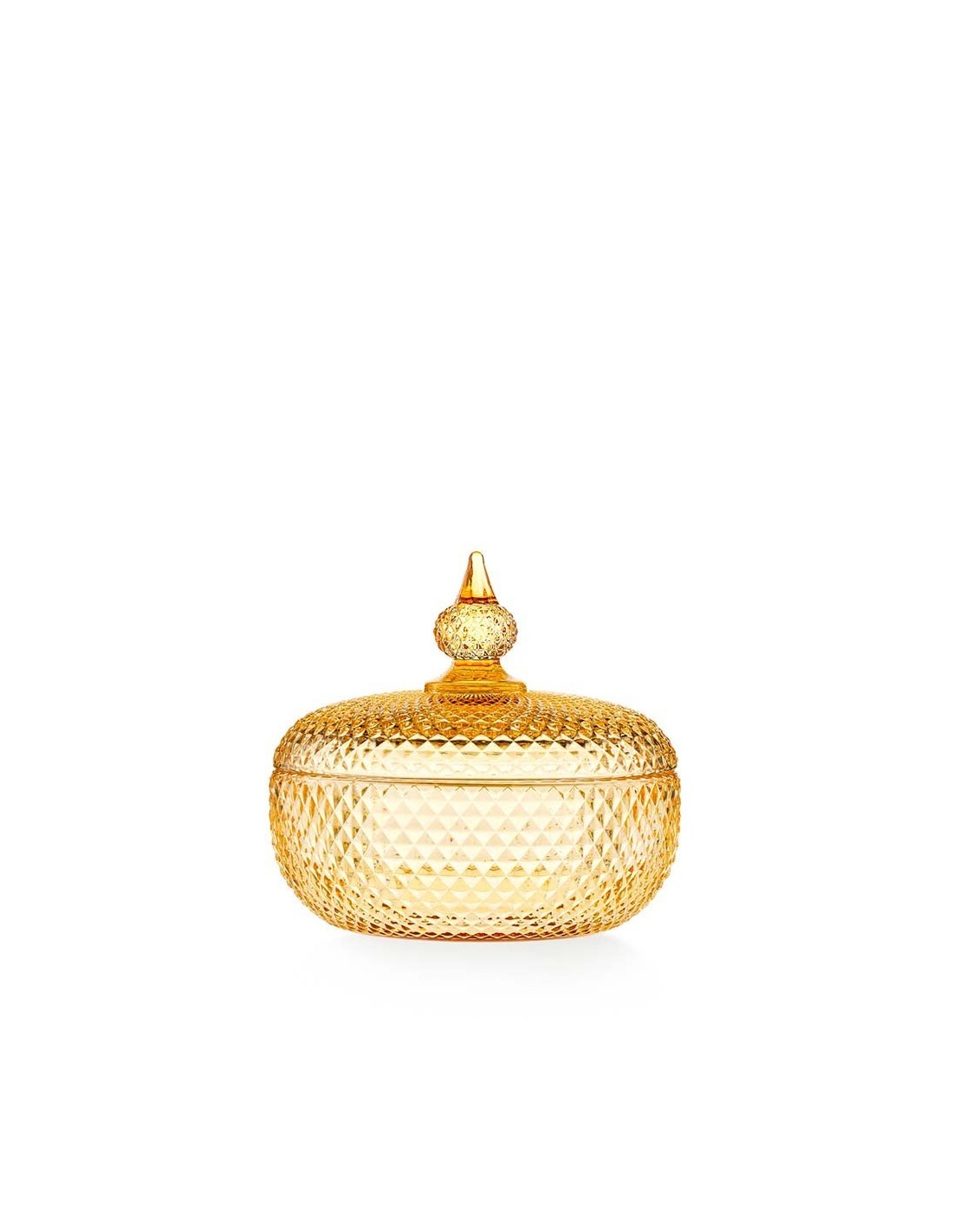 Il colore ambra crea un effetto luminoso e caldo che valorizza ogni ambiente, rendendo questa scatola anche una splendida idea regalo per la casa.