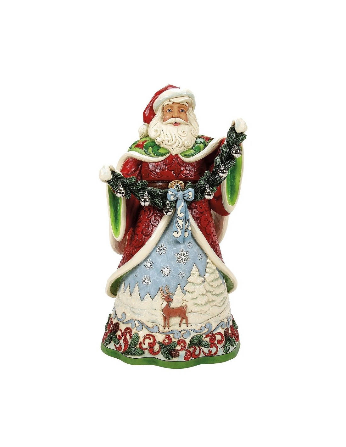 Questa edizione annuale di Jim Shore è una vera e propria opera d'arte. Con in mano una ghirlanda di abeti decorata con campanelle d'argento e un fiocco, Babbo Natale si perde nella bellezza della natura con una scena invernale di abeti e cervi. Un magnifico pezzo di lusso per abbellire la vostra casa durante le festività. Disegnato dal pluripremiato artista Jim Shore per la collezione Heartwood Creek. Ogni statuetta è dipinta a mano e sono prevedibili leggere variazioni di colore che rendono ogni pezzo unico. Questi articoli non sono giocattoli per bambini. Sono destinati esclusivamente agli adulti.