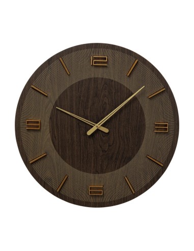 Orologio da Parete Design Moderno in Legno Marrone e Dettagli Oro