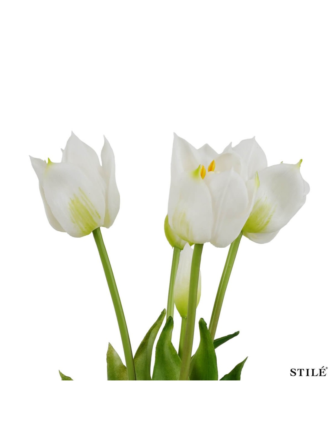 Il fascio è composto da 3 tulipani aperti e 2 boccioli chiusi, una combinazione studiata per dare movimento e naturalezza a composizioni floreali, centrotavola, vasi decorativi o allestimenti per eventi e vetrine. Con un’altezza di 38 cm, si adatta perfettamente a diversi stili di arredamento, dal moderno al classico.