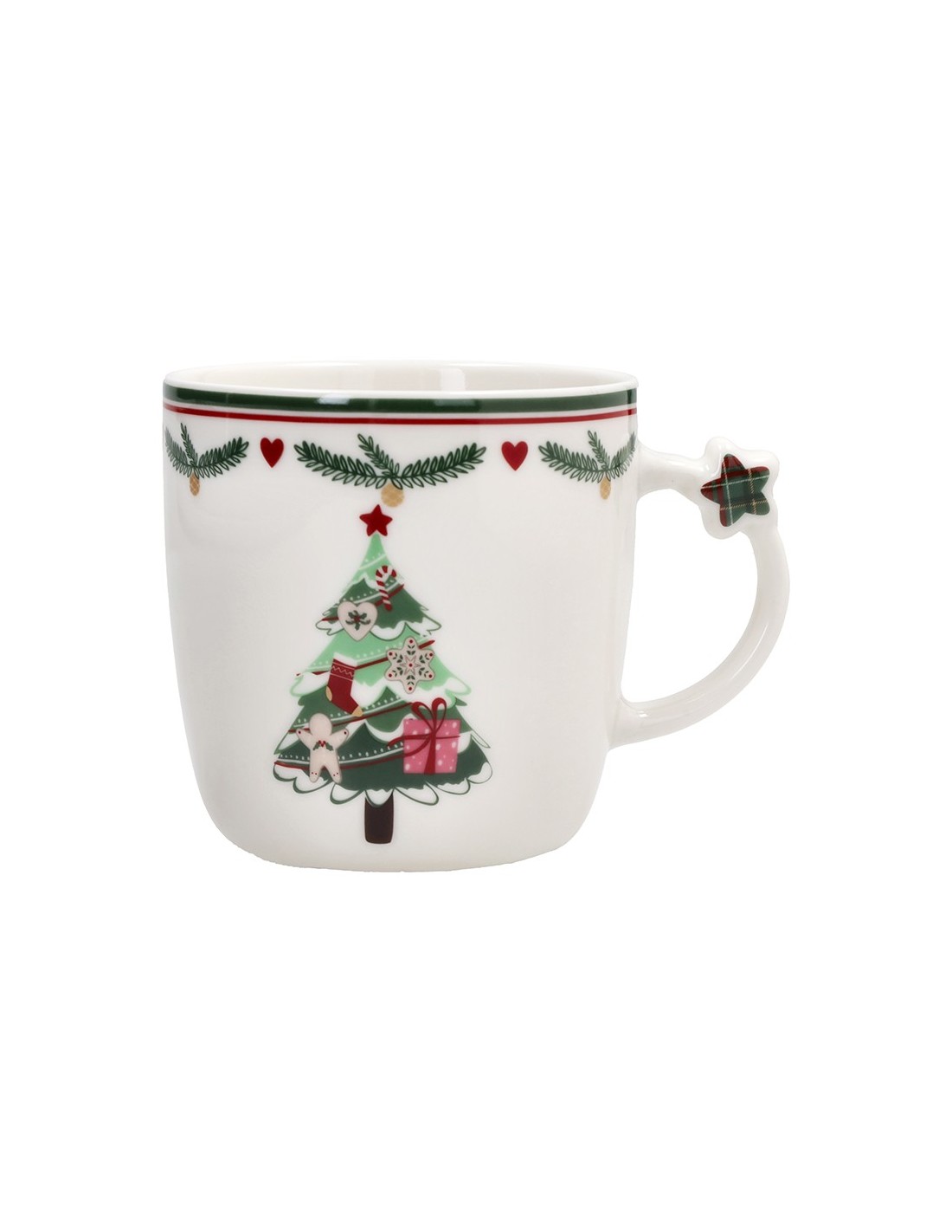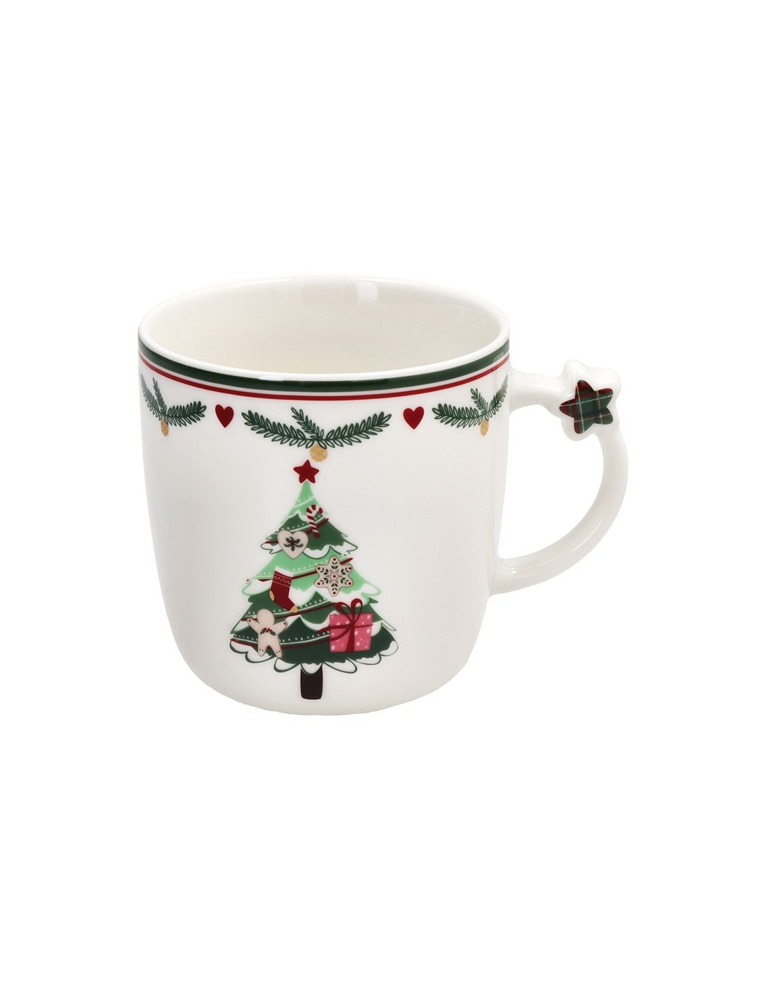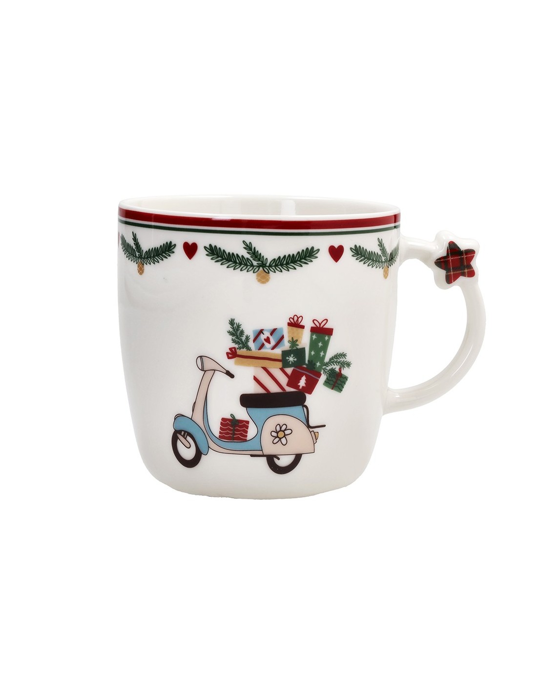 Il set 2 tazze natalizie, appartenente alla linea New Milk & Co. di Andrea Fontebasso, con albero e moto con regali è composto da due tazze in porcellana bianca. Ogni tazza presenta una decorazione unica: su una è raffigurato il classico albero natalizio, mentre sull’altra una moto carica di pacchi regalo, simbolo di gioia e tradizione. Entrambe sono arricchite da un raffinato motivo scozzese sul bordo superiore e da una stellina in rilievo 3D applicata sul manico, che dona un tocco originale e festoso.