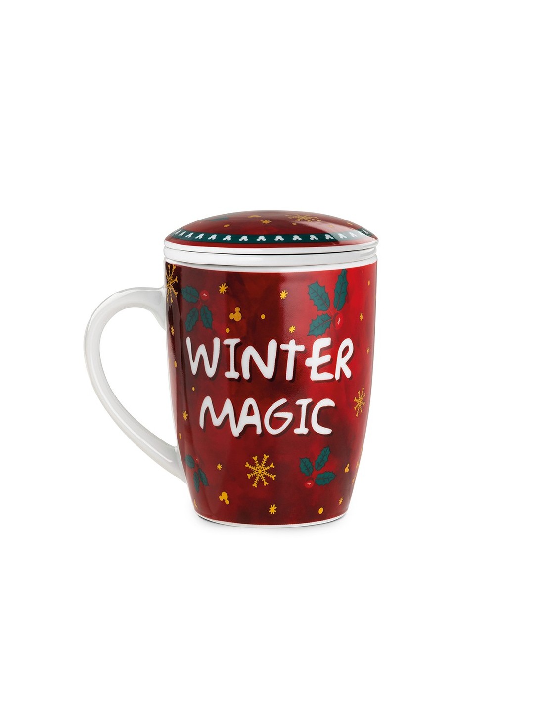 Rendi più caldi e magici i tuoi momenti di relax con la tisaniera natalizia dedicata a Topolino, parte della collezione Disney Winter Magic. La tisaniera presenta uno sfondo rosso intenso decorato con elementi tipici del Natale, come fiocchi di neve, stelle e rametti di agrifoglio. Il protagonista è Topolino, raffigurato in stile simpatico e festoso.