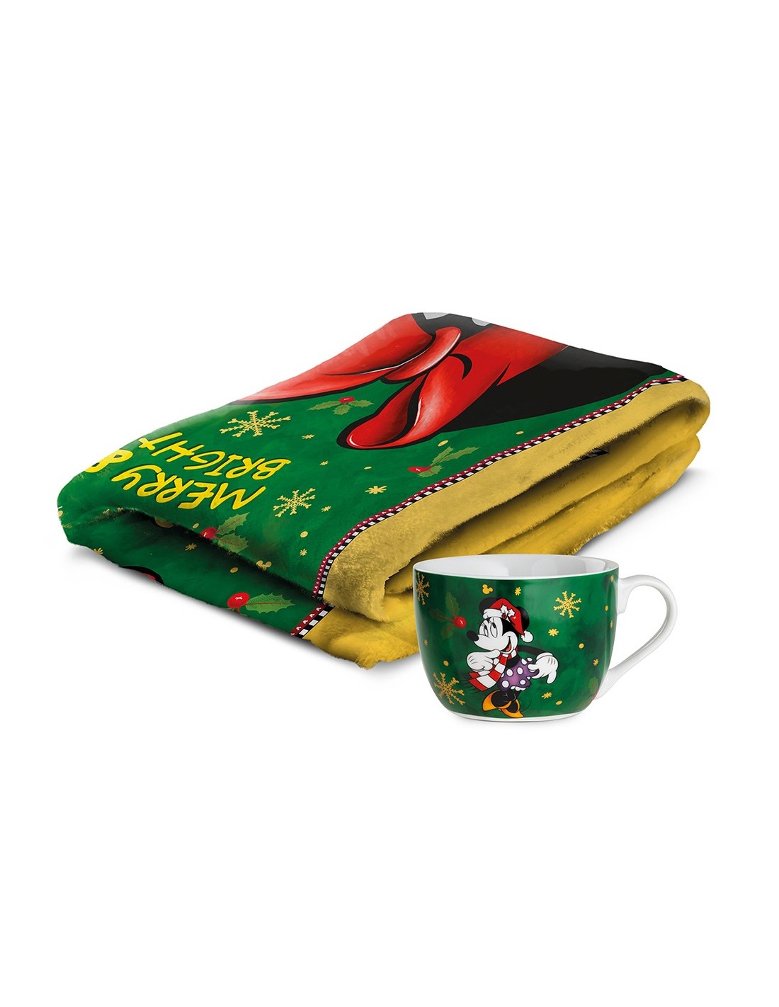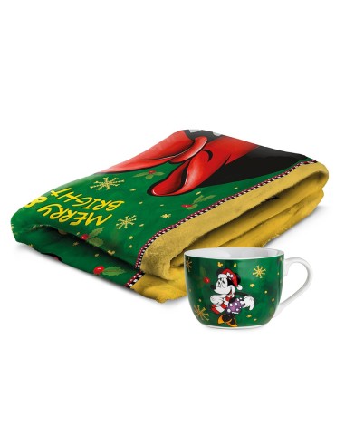 Il set è composto da un morbido plaid caldo coordinato, decorato con richiami natalizi e con la bellissima Minnie protagonista: perfetto per divano, lettura serale o una pausa rilassante.