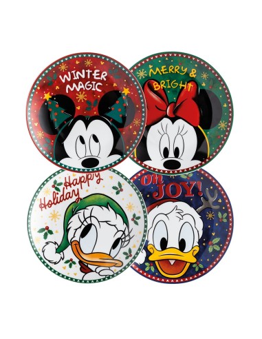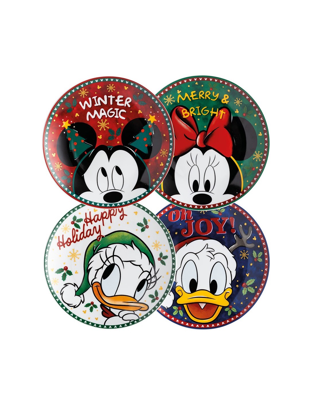 Porta in tavola l’incanto delle feste con il set da 4 piatti dolce della linea Disney Winter Magic. Ogni piatto è decorato con i personaggi Disney in una versione tenera e festosa, immersi in scenari natalizi ricchi di colori e dettagli: stelle, fiocchi di neve, agrifogli e motivi tradizionali invernali che rendono la tavola ancora più accogliente e allegra.