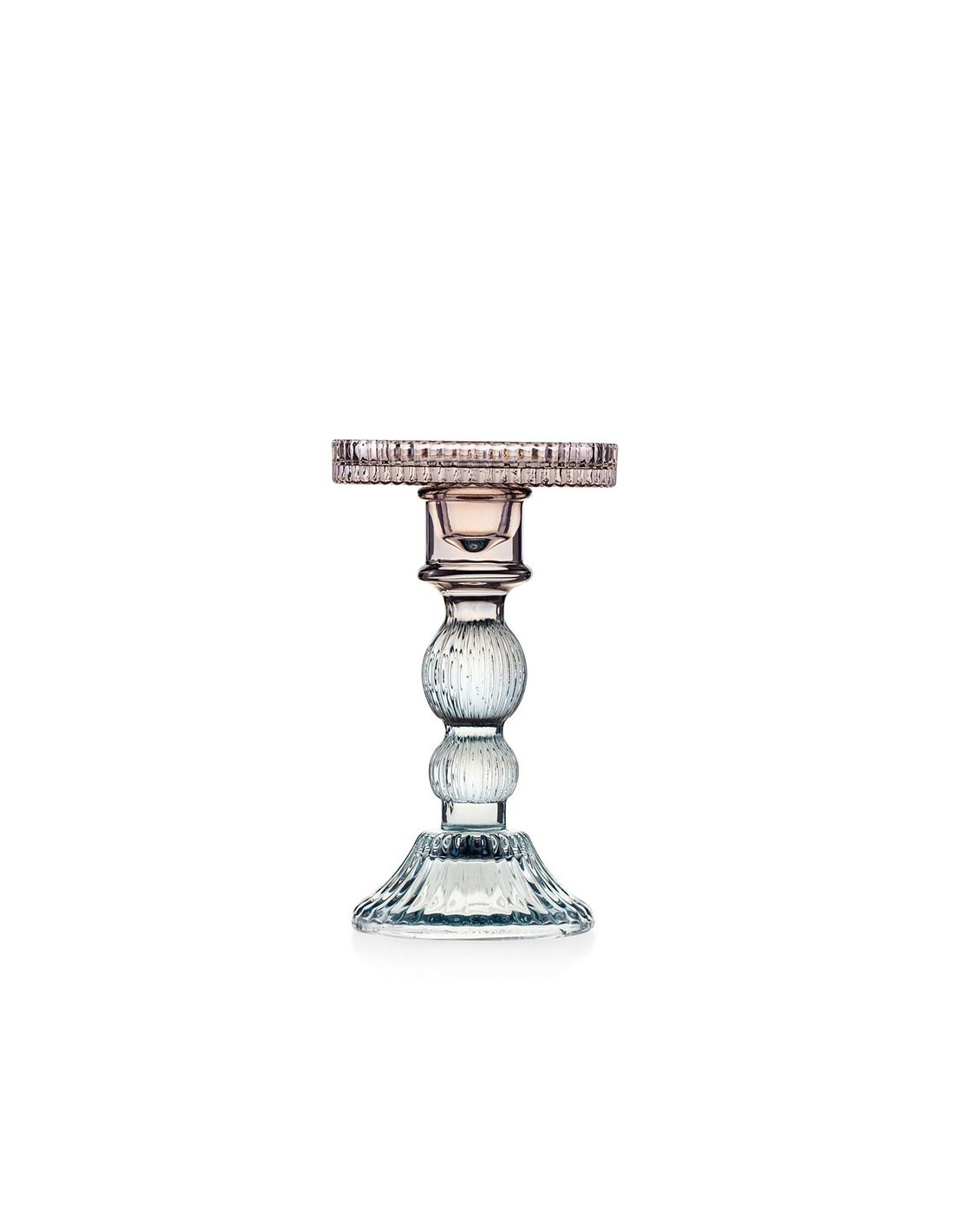 Candeliere in Vetro con Paralume Fango e Celeste – Linea Atena, 17 cm