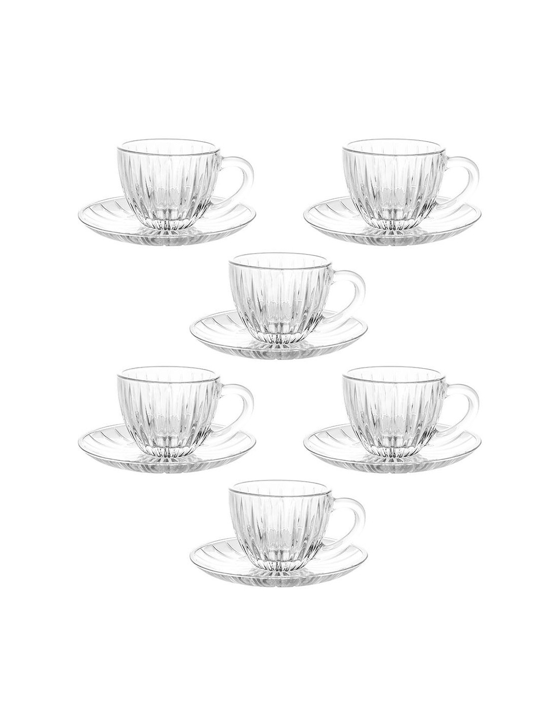 Fontebasso Set 6 Tazze Caffè in Vetro con Piattino 90 cc Rib