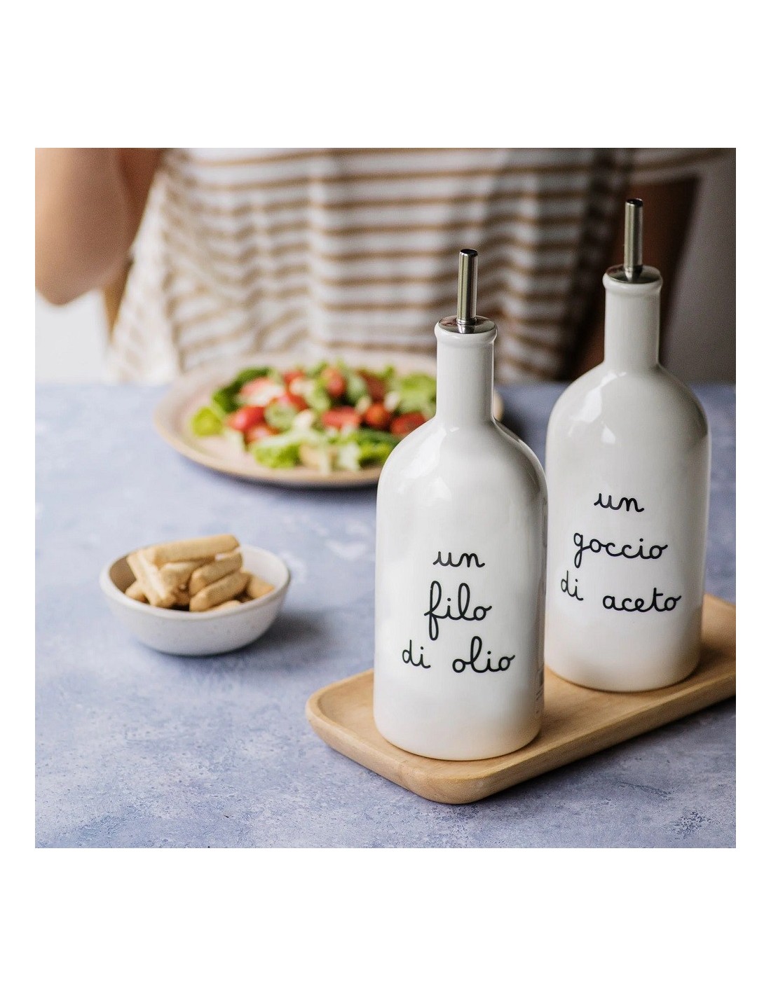 La forma minimale e il decoro Un filo d'olio sono l'ideale per adattarsi sia sulle tavole più eleganti che su quelle di tutti i giorni. Può essere anche un'idea regalo essendo un accessorio utile in ogni cucina.