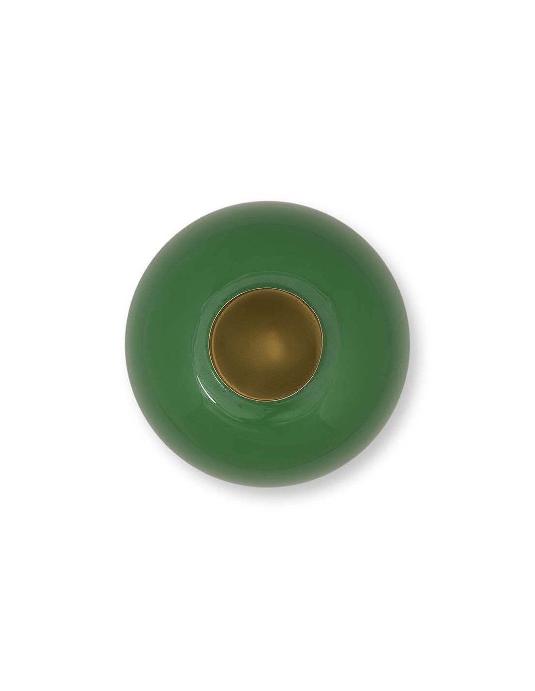 Questo elegante vaso in metallo verde si distingue per la sua raffinata forma, che dona equilibrio e armonia al design, rendendolo un complemento d’arredo moderno e di grande impatto visivo. La superficie in metallo, solida e resistente, presenta una finitura curata che valorizza la tonalità verde, fresca e naturale, capace di portare un tocco di colore sofisticato in qualsiasi ambiente.