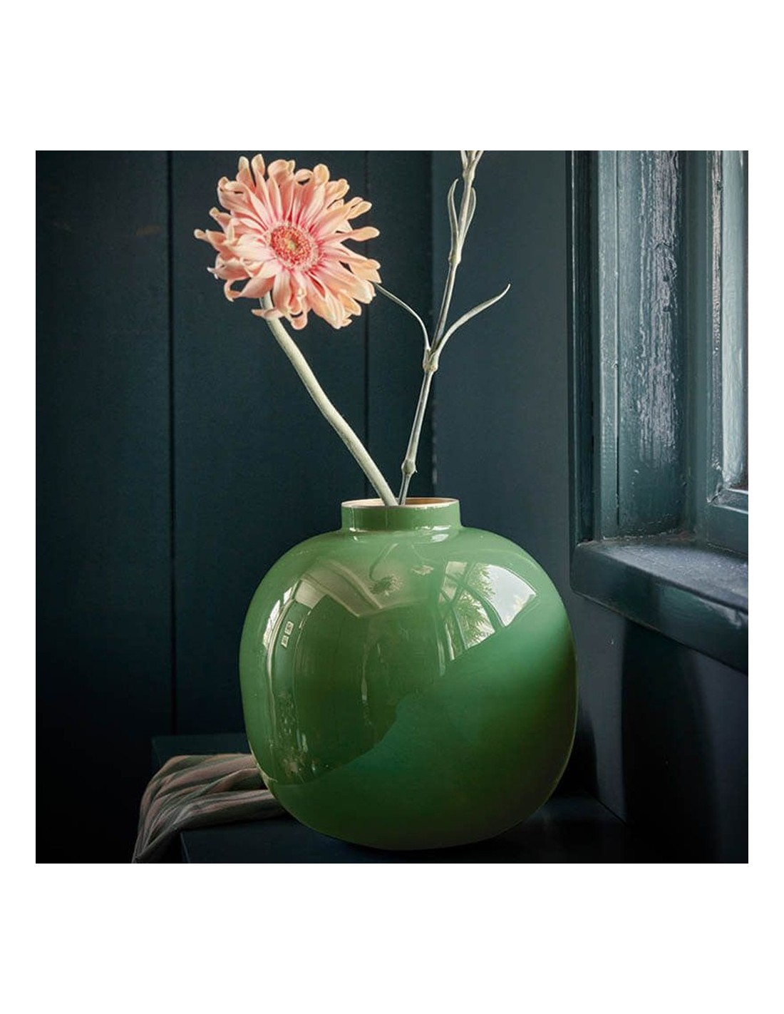 Grazie alla sua linea pulita e contemporanea, il vaso è ideale sia come contenitore per fiori freschi, fiori secchi o composizioni decorative, sia come elemento ornamentale a sé stante. La forma tondeggiante crea un effetto scultoreo che lo rende perfetto per essere esposto su tavoli, mensole, consolle o credenze.