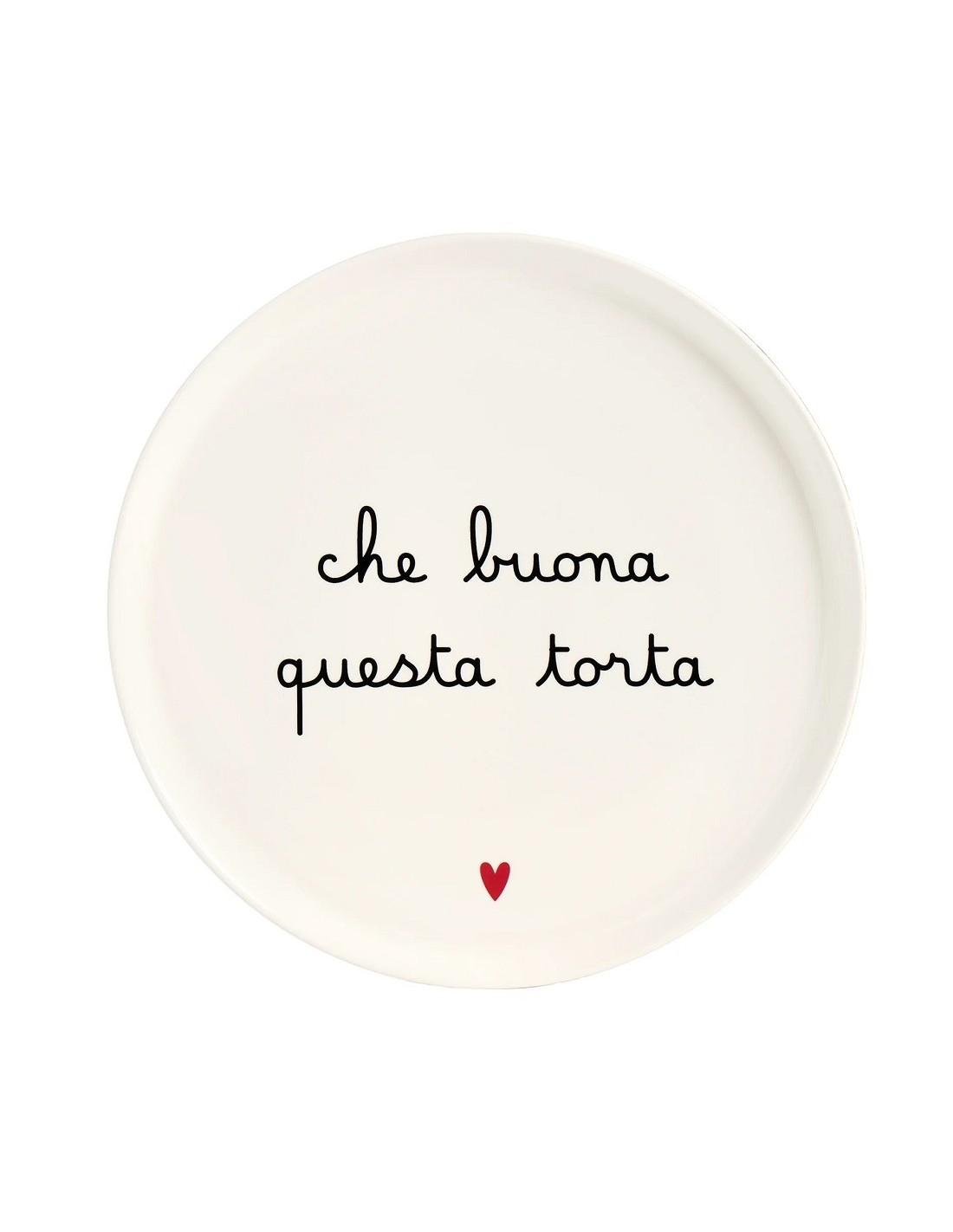 L'alzata bianca con decoro Che buona questa torta e cuore rosso.